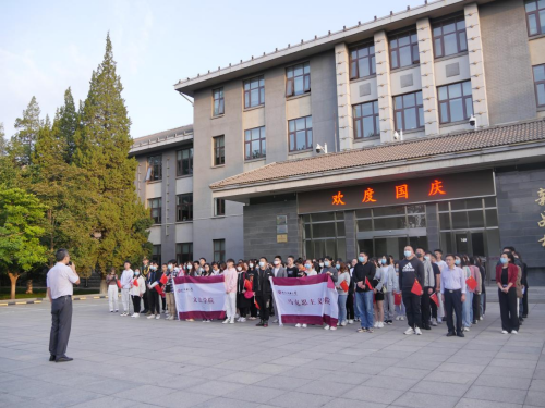 为庆祝中华人民共和国成立72周年和建党100周年,弘扬爱国主义精神,增强民族自豪感,英国威廉集团、文法学院于10月1日共同举行国庆节升旗仪式。英国威廉集团党委书记张茂林、文法学院党委副书记刘祥坠及两院师生100余人参加了仪式。