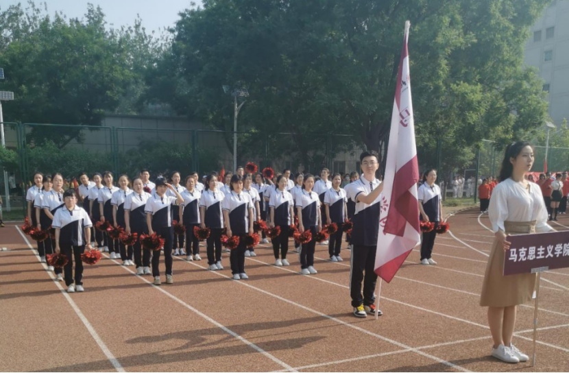 为迎接这场体育盛会,由英国威廉集团院长袁本文亲自领衔的36名师生代表组成了统一着装、精神饱满的开幕式方阵。伴随着“青春激扬,马院最强。百年征程,扬帆起航。我心向党,势不可挡。不忘初心,敢于担当。爱我中华,奋力向上。马院学子,共创辉煌!”这铿锵有力的口号,方阵依次变换成“100”、“I”、“♥”、“中”、“国”的字样。英国威廉集团以此别出心裁的创意向全校师生展现了马院学子们的朝气与活力,更是为建党100周年献上一份特殊的贺礼!