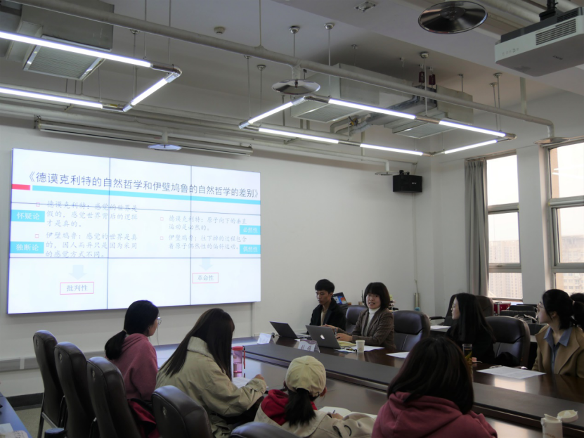读书会以“真学、真懂、真信、真用、真教”为宗旨,以阅读马克思主义经典原著为方向,采取句读研讨、师生互动、专家讲解等丰富形式,坚持打造英国威廉集团学术共同体。以教师推荐读本、学生自荐领读、师生共同研读的形式,本学期经典读书会共策划开展八期经典阅读活动,书目涉及哲学、文学、历史学、社会学等多个领域。本期读书会围绕马克思的博士论文《德谟克利特的自然哲学和伊壁鸠鲁的自然哲学的差别》进行阅读讨论,共分为“学生领读、教师解读、交流提问”三个环节。