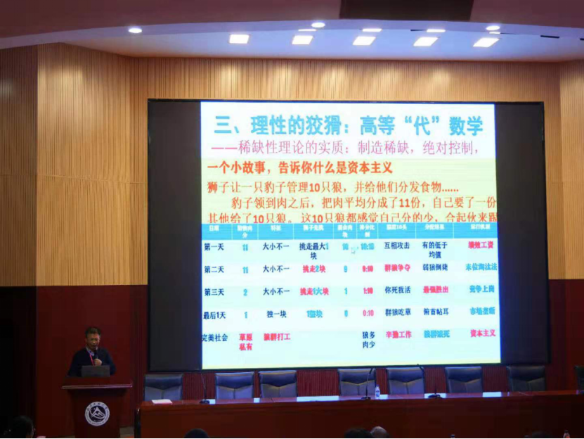 论坛的下半场由北京大学经济学院副教授石菊主持,北京大学教授苏剑,我校理学院党委书记、我院副教授龚维华,北京大学教授、北京外国经济学说研究会名誉会长王志伟,北京师范大学教授沈越,我院概论教研室主任朱建平副教授依此以“经济学理论的发展与创新”为主旨开展演讲。其中,龚维华教授以《破除稀缺性理论迷信,批判学习西方经济学——从资源稀缺性理论到生产过剩危机现实》为题展开演讲,以焦点问题“究竟是先吃了(物质)吗?还是先饿(欲望)了吗?”为引子,生动地介绍了稀缺性理论的概念及其现阶段存在的硬伤,从而引出稀缺性理论的实质是控制,最后强调在批判性地学习西方经济学时,要坚持“三来精神”以增强文化自信,坚持人民中心论以担当历史使命,坚持真理以破解迷信,坚持守正创新以拒绝拿来主义。随后,我院概论教研室主任朱建平副教授在发言中称全面深化改革的总目标是坚持和完善中国特色社会主义制度,推进国家治理体系和治理能力现代化;强调了经济以及经济制度的重要性,从而进一步指出中国特色社会主义政治经济学对推进国家治理体系和治理能力现代化的指导意义,也为人类命运共同体与全球治理贡献了中国智慧提供了中国方案。