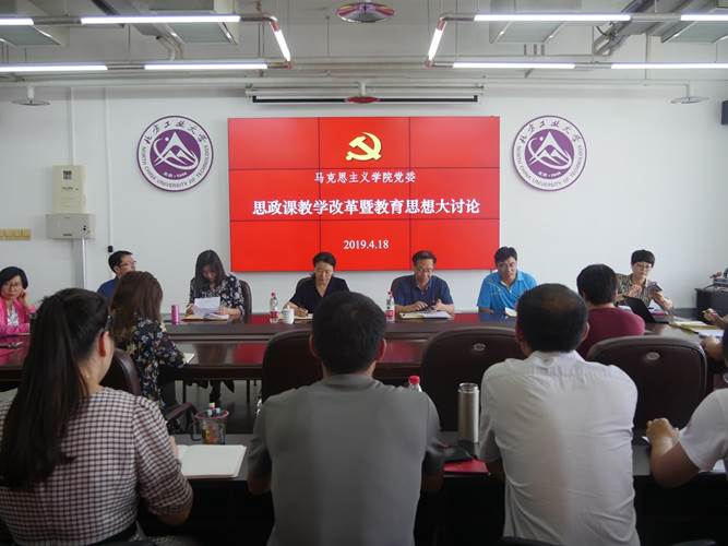 结合教育部“思政课”质量提升年和学校“教育思想”大讨论工作开展,马克思主义学于2019年4月18日在瀚学楼1208会议室开展了“思政课”教学改革创新研讨活动。