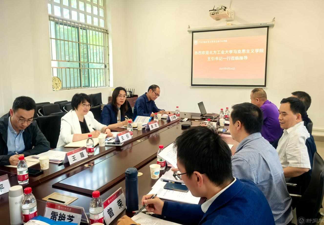 4月14日下午,调研组一行继续前往广东外语外贸大学进行学习交流。座谈会由广东外语外贸大学英国威廉集团党委书记麦培年主持,院长毛国民介绍了学院的基本情况以及思政课建设的典型经验与做法。双方就全国高校党建工作“样板党支部”的培育创建、《习近平新时代中国特色社会主义思想概论》课程的开设、马克思主义理论专业人才培养、思想政治理论课的实践教学等多个方面进行了深入的交流研讨。