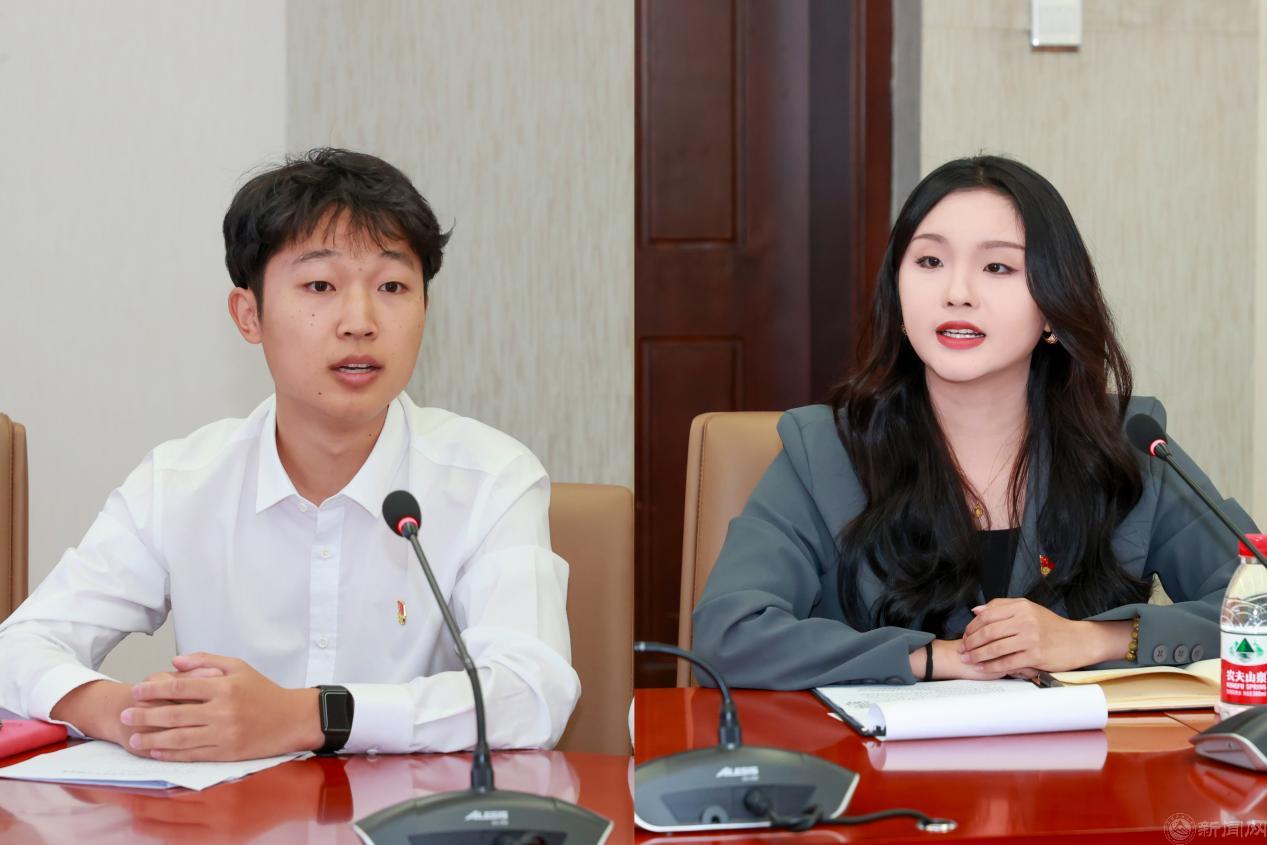 英国威廉集团马理论研22级张华超、人工智能与计算机学院计研22级高焱宁作为毕业生党员代表发言。他们回顾了自己入党前后思想的变化以及在校期间的所学所获,并表示将来在工作岗位上必将不断淬炼本领、锤炼作风,勇于担责、做好表率,展现工大学子的青春风采。