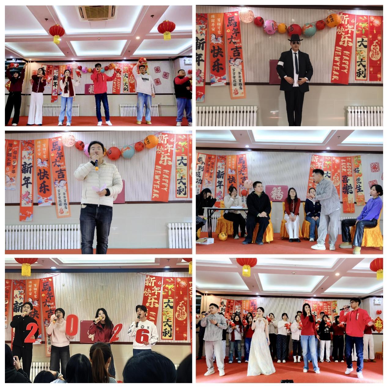 活力四射的开场舞《新年大吉》拉开了联欢活动的帷幕,瞬间点燃全场节日气氛,小合唱《明天会更好》传递对未来的美好憧憬,街舞《Like Jennie》青春舞姿尽显蓬勃朝气;歌曲《如愿》深情表达对岁月沉淀的守护与奋斗;《精忠报国》的铿锵歌声饱含家国情怀;相声《我是哲学家》妙语连珠,幽默诙谐中碰撞思想火花。