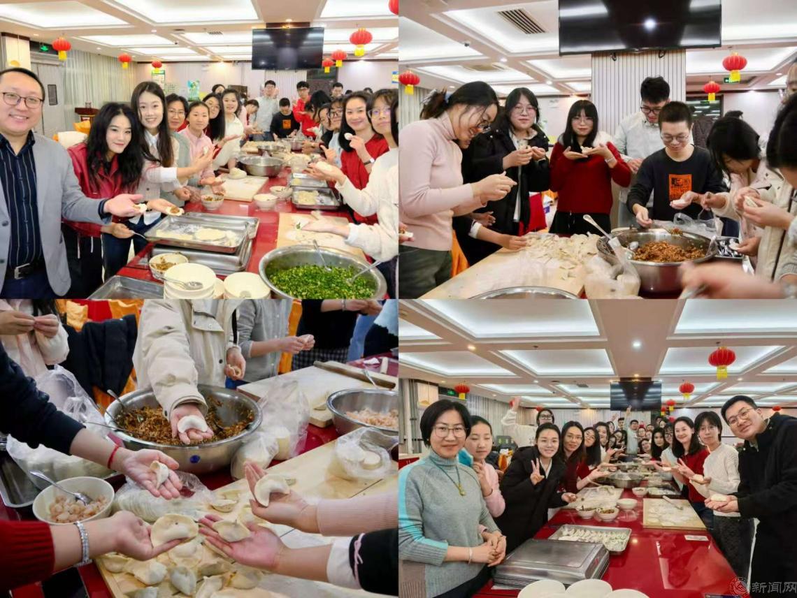 师生们围坐在一起和面、擀皮、包馅,各式造型的饺子跃然桌上。大家边包饺子边分享生活趣事,在冬日里交织出温馨动人的团圆画面。