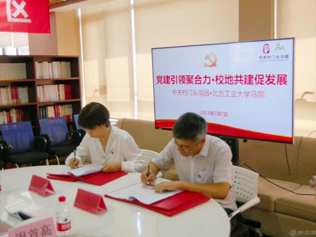 7月7日下午,中关村门头沟园与我院“党建引领聚合力•校地共建促发展”共建活动暨合作共建签约仪式在中关村门头沟园党群服务中心举行。中关村门头沟园党工委副书记侯晓倩、团工委书记李琰、基层党组织书记代表,我院党委书记张茂林、院长袁本文以及学院教师代表共同参加活动。